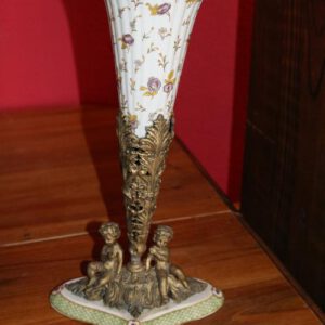 große Porzellan Vase mit Bronze Figuren/Applikationen, gemarkt, H 4cm (8)