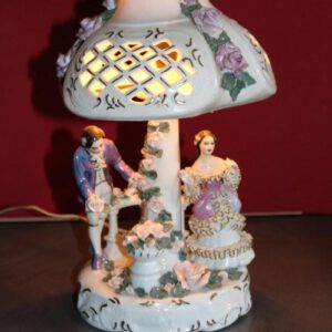 Porzellan Tischlampe mit Figurengruppe, H 39cm, Roceram (8)