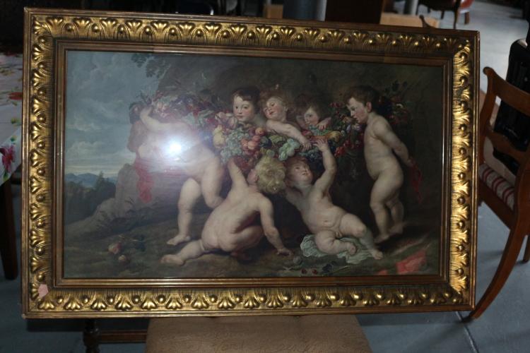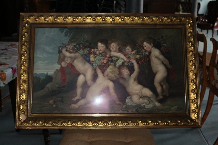altes Bild / Druck im Prunkrahmen um 1900, H 64cm x B 100 (14)