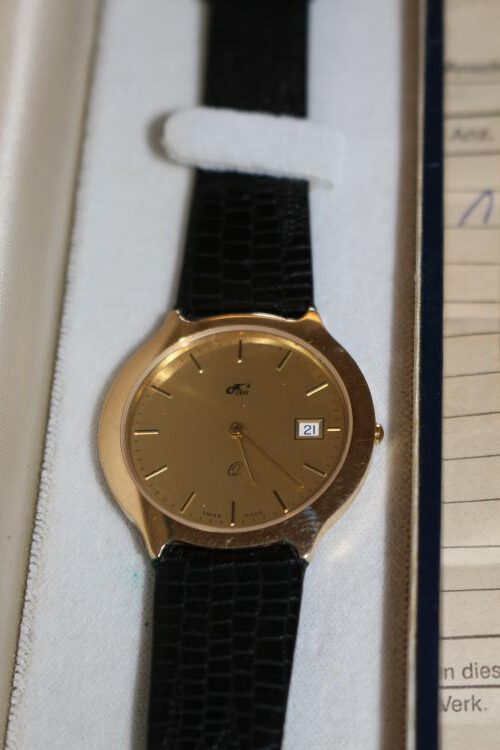 Schreibe die erste Bewertung für „goldene Armbanduhr, 585er Gold, Kasper, Gesamtgewicht ca. 30 Gramm (25)“