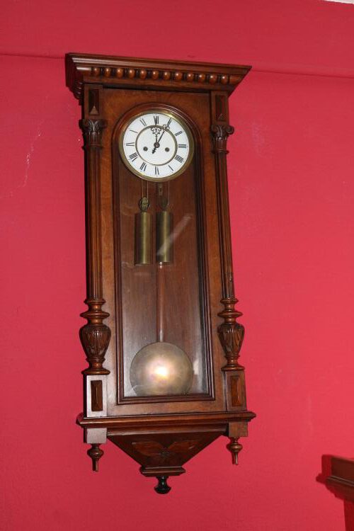 Schreibe die erste Bewertung für „Gründerzeit Wiener Regulator mit 2 Gewichten um 1880, B 43cm x T 18cm x H 97cm (14)“