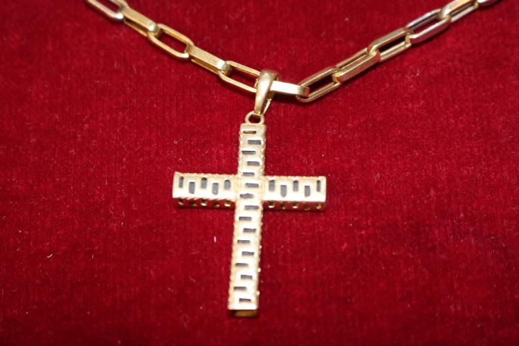 Kette mit Anhänger Kreuz, 585er, 14,5 Gramm, Länge 55cm (7)