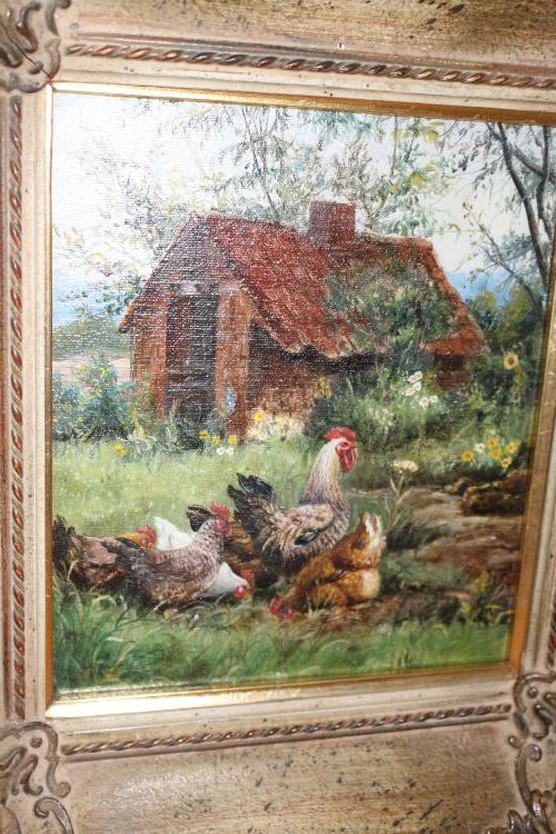 Ölgemälde Hühner signiert, B 33cm x H 36cm (17)