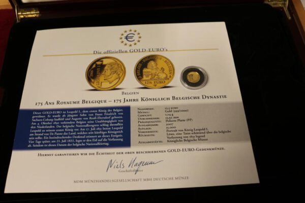999er Gold 1,24 Gramm, Münze – 175 Jahre Königlich Belgische Dynastie