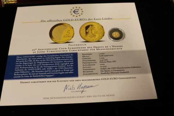 999er Gold 1,24 Gramm, Münze – Frankreich 50 Jahe Europäischer Gerichtshof für Menschenrechte