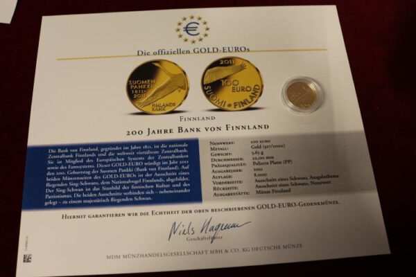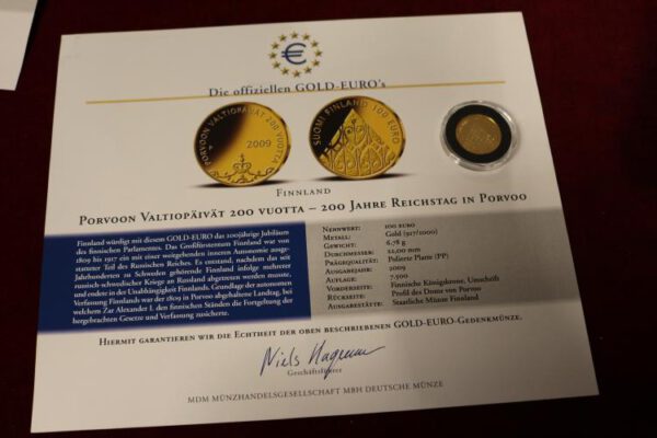 917er Gold, 12,43 Gramm – Münzen 200Jahre Reichstag in Porvoo, 200 Jahre Bank von Finnland