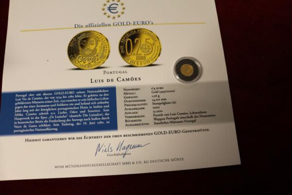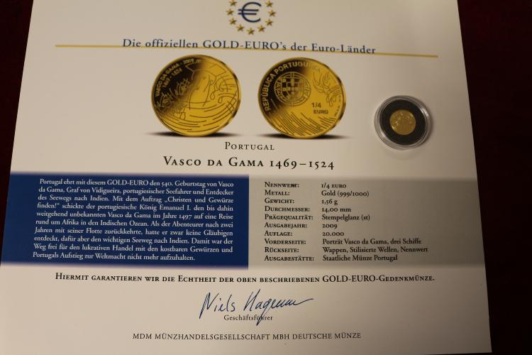 999er Gold, 6,85 Gramm, Münzen – Luis de Camoes, Vasco da Gama, Skellig Michael, König Albert I, Jahr von Spanien in China