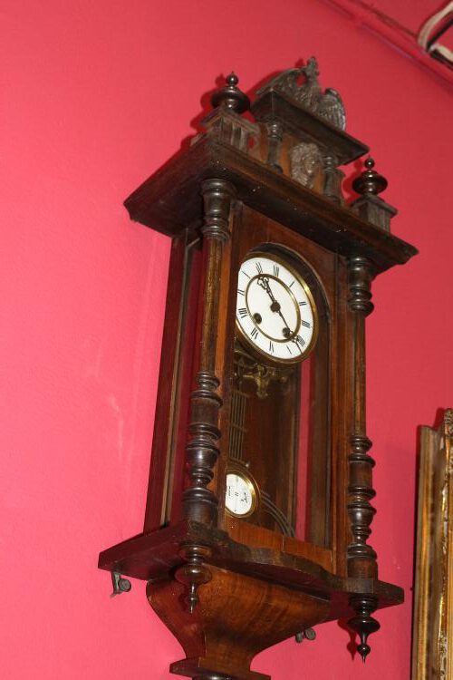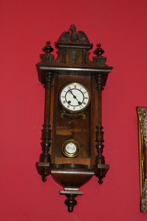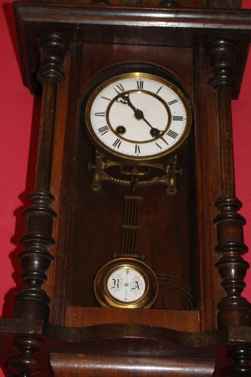 Regulator um 1880 mit Aufsatz, Uhrwerk läuft, H 83cm x B 30cm (6)